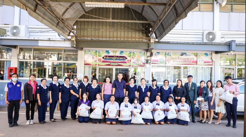 เหล่ากาชาดจังหวัดบึงกาฬ และสำนักงานพัฒนาสังคมและความมั่นคงของมนุษย์จังหวัดบึงกาฬ เข้าพบนักเรียนทุนในพระราชานุเคราะห์ฯ