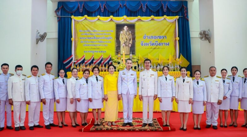 คณะผู้บริหาร คณะครูและบุคลากรทางการศึกษาโรงเรียนเซกา ร่วมกิจกรรมถวายพานพุ่มสักการะ กล่าวคำถวายพระพรชัยมงคล และทำบุญตักบาตร ข้าวสารอาหารแห้งพระสงฆ์ เนื่องในวันเฉลิมพระชนมพรรษาพระบาทสมเด็จพระปรเมนทรรามาธิบดีศรีสินทร มหาวชิราลงกรณ พระวชิรเกล้าเจ้าอยู่หัว ณ หอประชุมที่ว่าการอำเภอเซกา จังหวัดบึงกาฬ