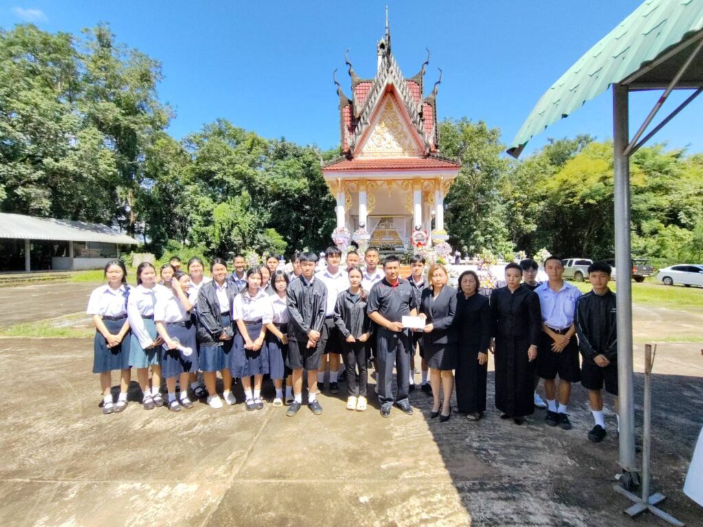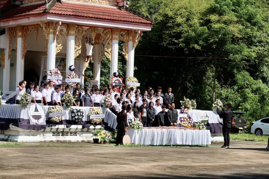 คณะผู้บริหาร คณะครู และนักเรียนโรงเรียนเซกา ร่วมพิธีฌาปนกิจศพ นักเรียนชั้นมัธยมศึกษาปีที่ 4 ที่เสียชีวิตจากเหตุการณ์รถรับ-ส่งนักเรียนเกิดอุบัติเหตุ วันอาทิตย์ ที่ 10 สิงหาคม พ.ศ. 2568 ณ วัดป่าธรรมาราม อำเภอนาทม จังหวัดนครพนม