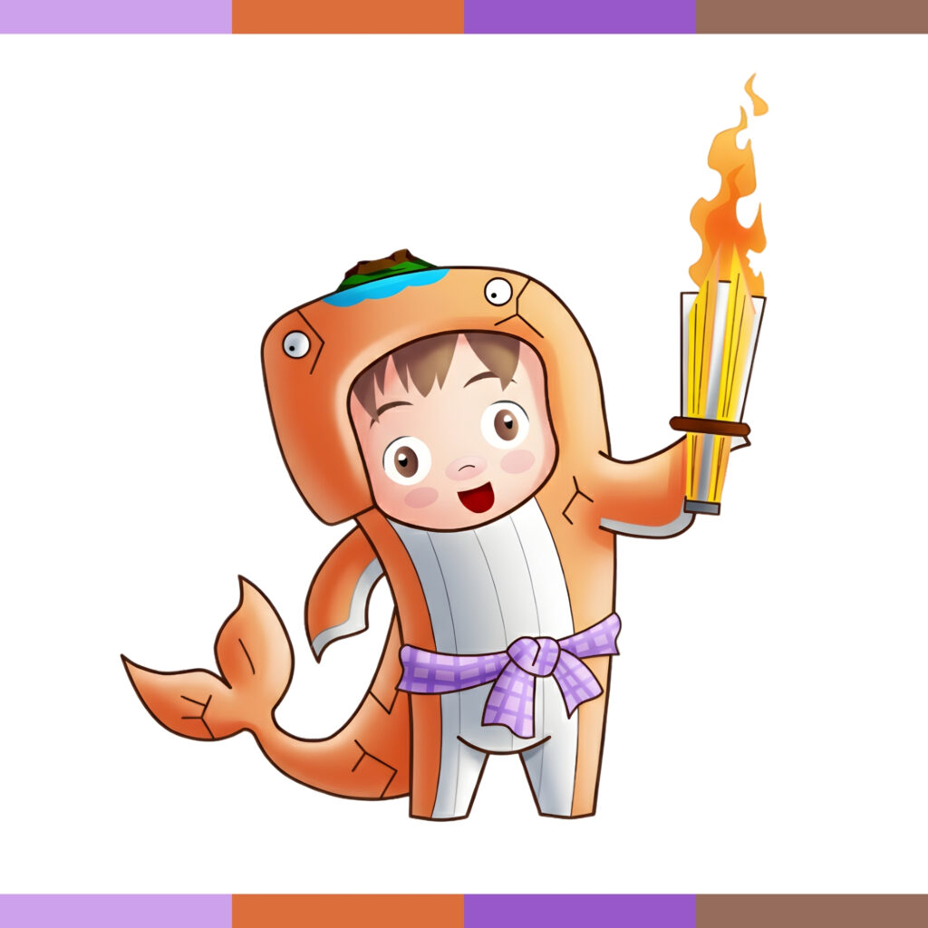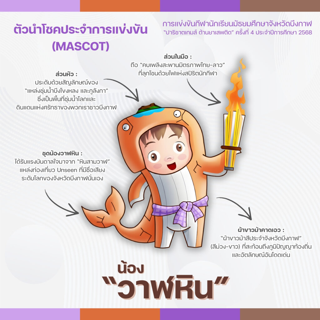 • ในมือของน้อง : ถือ “คบเพลิงสะพานมิตรภาพไทย-ลาว” ที่ลุกโชนด้วยไฟแห่งสปิริตนักกีฬา